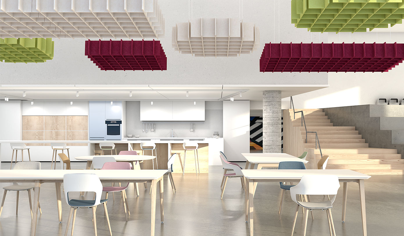 No matter what shape the Trellis Cloud comes in, its ability to absorb sound and its characteristic grid stay the same. Designed to resemble the trellis structures that adorn gardens and backyards, Trellis Clouds nurture the same sense of peace and calm in a laid-back cafe or in a bustling office. Suspend them from the ceiling and watch them work their magic.